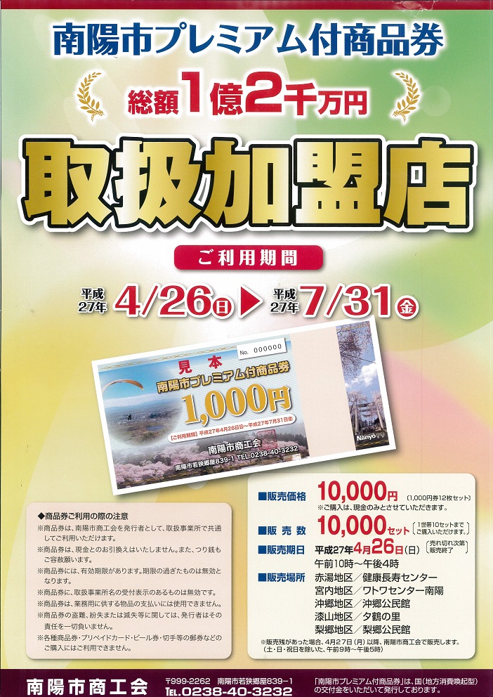 南陽市プレミアム付商品券のご利用期限が間近です!
